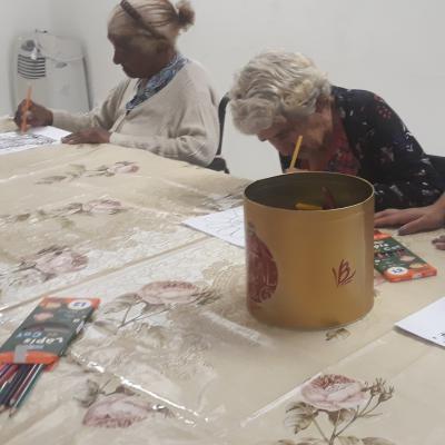 Diariamente, os idosos de nossa instituição são estimulados a realizar atividades com lápis de cor, giz de cera, canetinhas, recorte e cole, e diversos outros recursos que façam com que os idosos sejam criativos e interajam entre si.